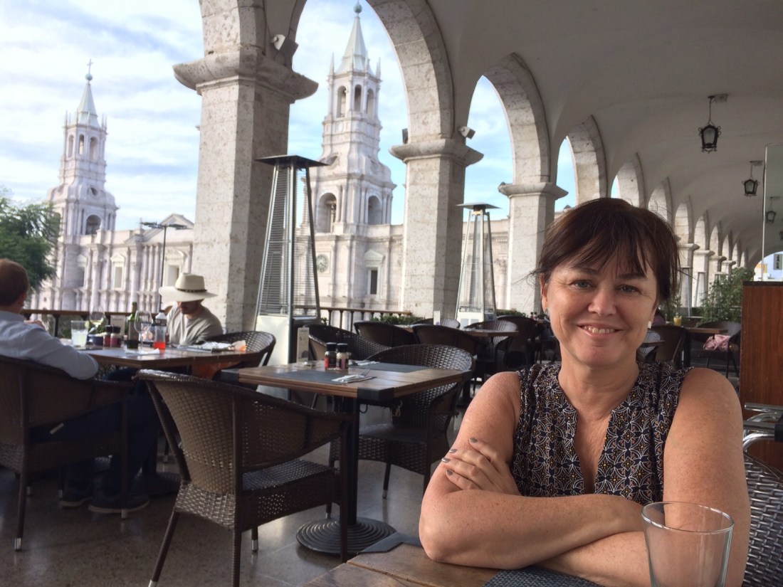 Trots detta är Arequipa den klart vackraste staden vi besökt i Peru. Det vill säga den har ett vackert historiskt centrum som utgör en mycket liten del av miljonstaden. Den vita staden kallas den efter de pampiga byggnaderna runt Placa de Armas, stadens centrala torg, och pampigast av dem alla är klostret med sina två torn. Här bodde också författaren Mario Vargas Llosa vars hem nu är ett litet museum. ”Ja han, allt här är ju döpt efter honom, muttrar P”.