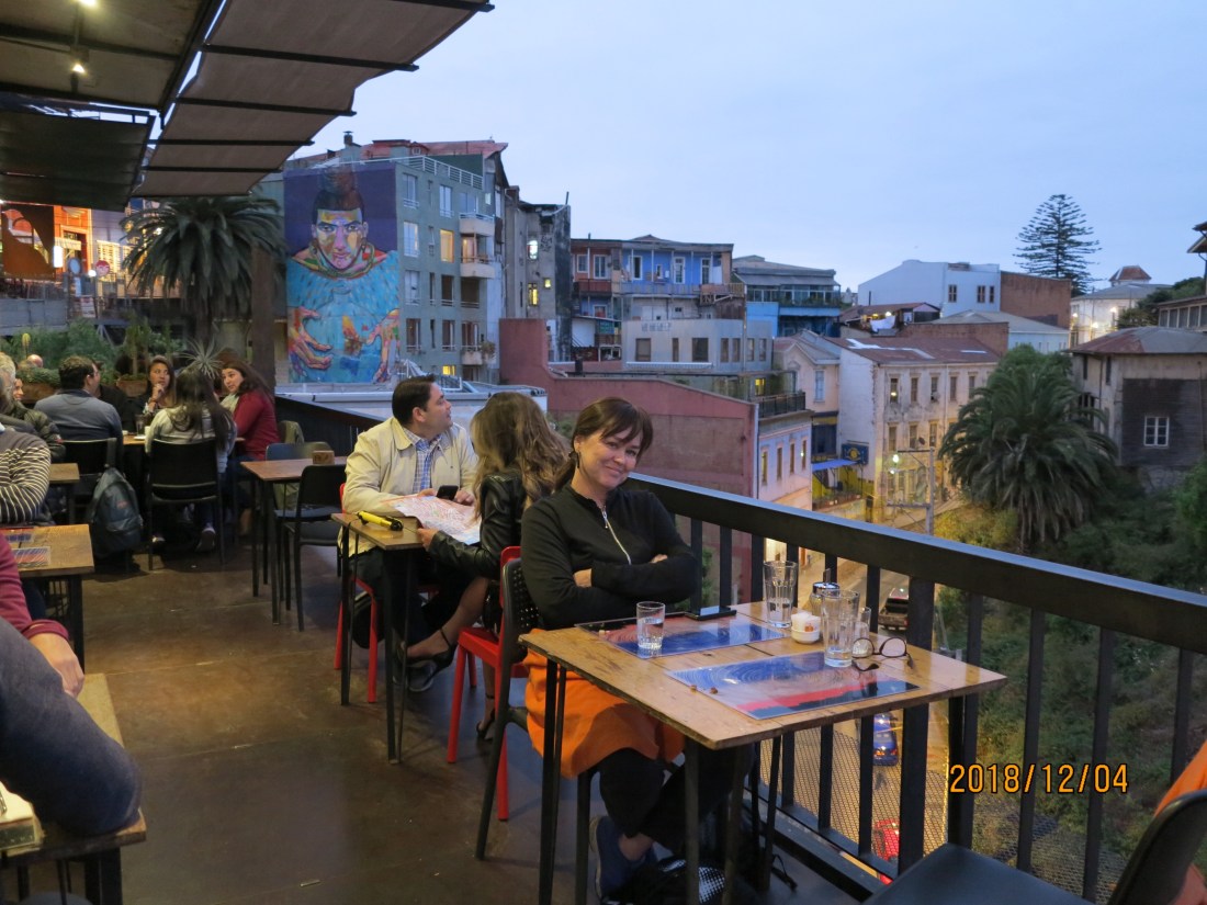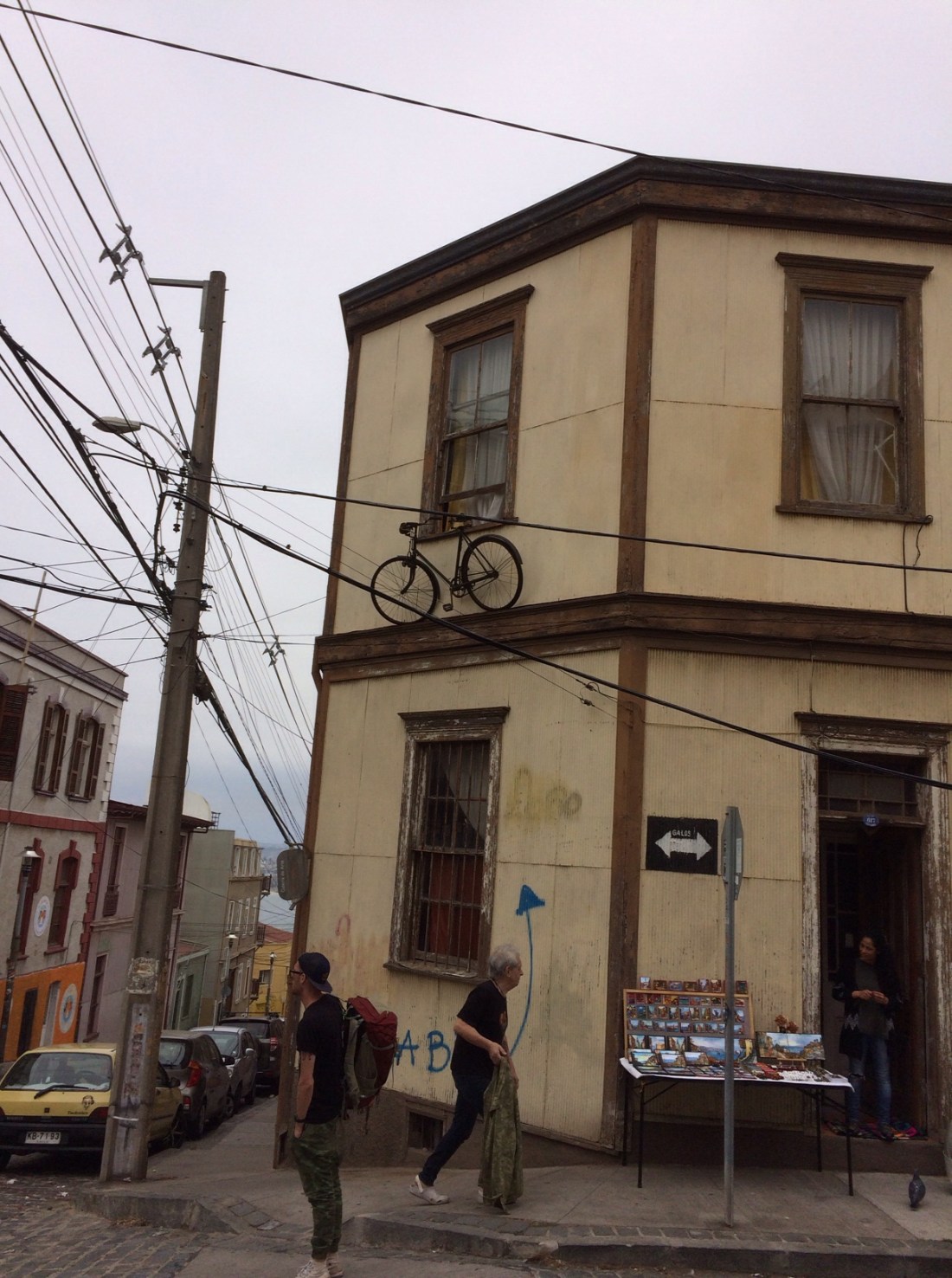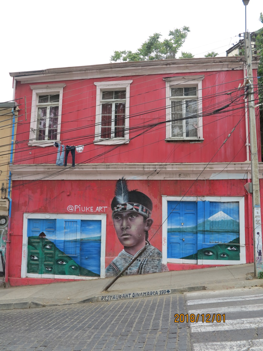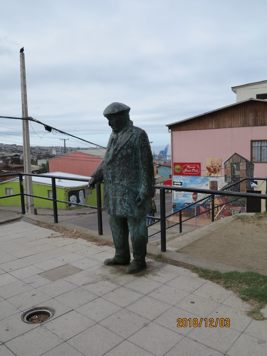 Hur många berg har vi klättrat uppför, ibland med hjälp av 50 meters bergbana, ständigt klättrande, hur långt är det till Paulo Nerudas hus, vi går tre kvarter till, måste vila lite, en öl på fiket där, ok, men sen ska vi hitta det, vi frågor flickan där, ok strax framme, borde det inte vara här, bara till nästa t.korsning, kolla vilka häftiga konstverk på väggen där borta, finns mer i nästa kvarter, tittar på det innan vi hittar Neruda, men jag vill se Nerudas hus, ok bara några bilder på grafittin. Men här kom vi ju upp med bergbanan igår, just det är ju här vi ska äta ikväll. Kanske där leta mer imorgon, har ju redan otroligt mycket fina hus, måste det vara just Nerudas??!