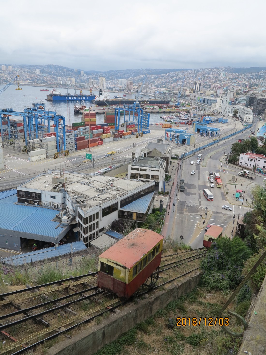 ”Bedagad! Ååååå mamma, det är bara du som använder såna konstiga ord, stönade dottern Ewa för några år sedan” Faktum är att ”bedagade” är det perfekta ordet för en majoritet av byggnaderna i Valparaiso. Många ser fallfärdiga ut, inslagna i ‘korrigerad’ plåt i alla tänkbara pastell färger, ser faktiskt ut som dom kan blåsa omkull vilken sekund som helst, kanske är dom lyxiga inuti, är det månne UNESCOs fel, att man inte får byta fasaderna. Som vi redan skrivit är det så otroligt mycket färg på hus o grafitti, däremot har männikornas klädesdräkter övergått från Colombianskt intensiva färgkaskader, via Perus traditionsbundna färgrika kläder, till en nästa Stockholmstråkig gråskala. Är det månne så att ju längre vi kommer från ekvatorn, desto färglösar blir vi?
