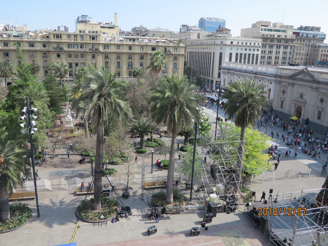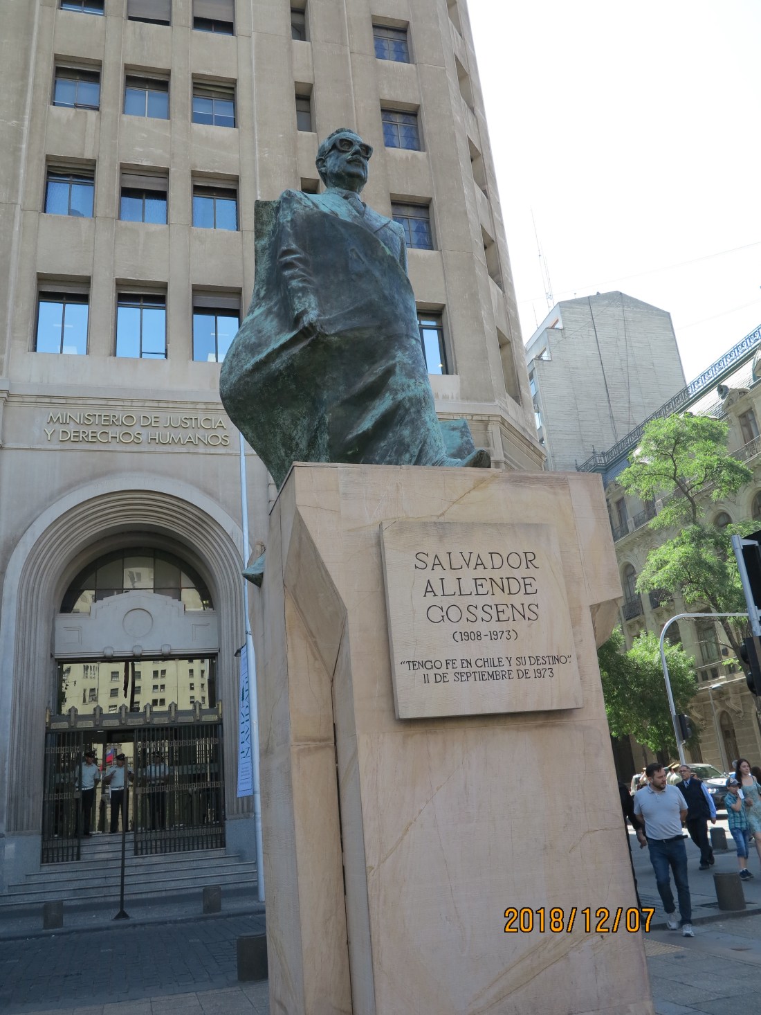 Men vår guide Franco är full av entusiasm och massor av kunskap även om Chiles kända nobelprisbelönta poeter Neruda (se tidigare bloggpost) och Gabriela Mistral. Hon stred stred för övrigt för kvinnlig rösträtt i Chile, som kom sent. Han visar oss även platsen för kuppen 11 september 1973 då militären besköt presidentpalatset, Allende avsattes och Pinochet tog över. Tänk att han fick sitta kvar ända till 1990! När vi vandrar hem över Placa de Armas långt senare är torget fyllt av människor, tända lyktor och affischer med namn på saknade barn eller vuxna släktingar.
