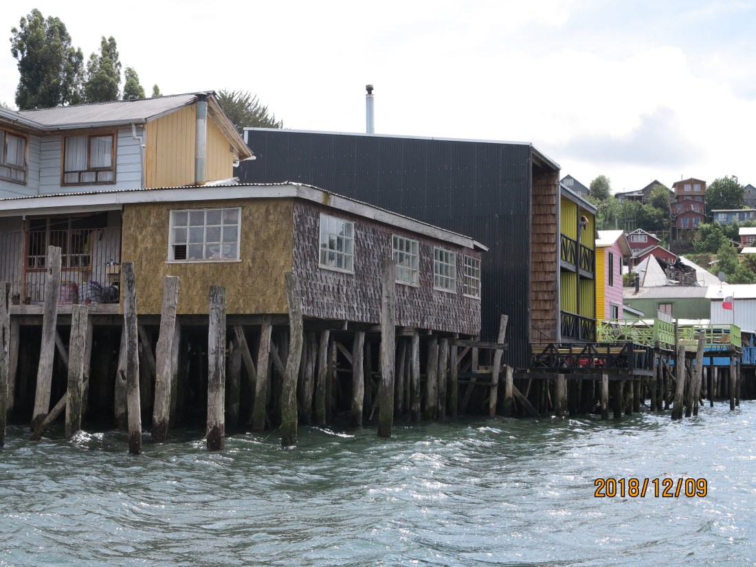 Patagonien sträcker sig över både Chile och Argentina. På Chile-sidan utgörs det av en kust full av fjordar som på kartan påminner mycket om Norge. Vi tar en tur ut på den stora ön Chiloé och pruttar iväg i en liten minibuss tillsammans med ett tiotal pratglada sydamerikanska turister. Det blir en intensiv dag, i och ur bussen, med till exempel; många besök i de speciella små träkyrkorna som finns här (arkitekturvänner, please googla för fina bilder), ett båttur på fjorden utanför staden Castro med magellanska pingviner, svarthalsade svanar och de typiska trähusen byggda på pålar i vattnet, en obeskrivligt naiv mytologisk naturstigsvandring, den absolut fulaste torgjulgranen hittills, lantarbetarlunch i en militärtältsformad, enkel träbyggnad mitt ute på vischan och många besök i små ”artesanal” butiker med lokalt hantverk av skiftande kvalitet. I Castro finner vi den fulaste kyrkan som vi någonsin sett, kanske något för Färjestadsfans, i gult och lila. Men fulheten gällde bara utsidan, på insidan är det en otroligt vacker träkyrka, enligt vår busskompis sammanfogad helt utan synliga spikar och det är väl insidan som räknas?!