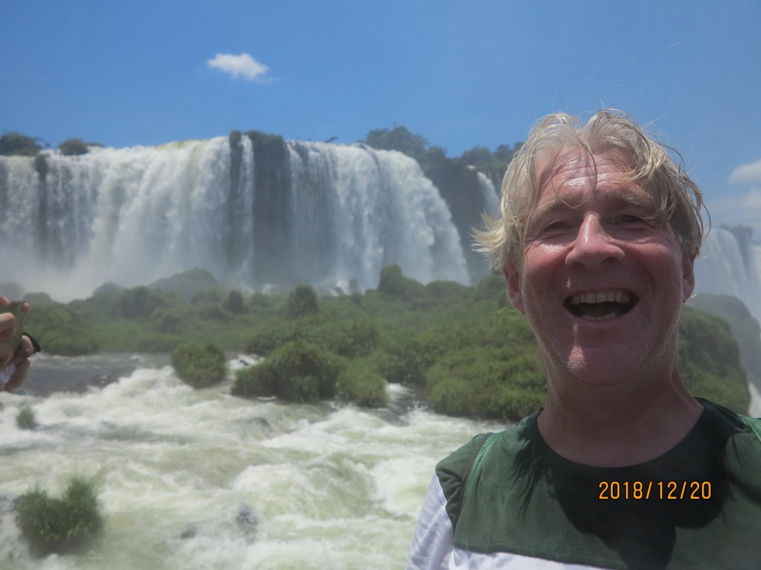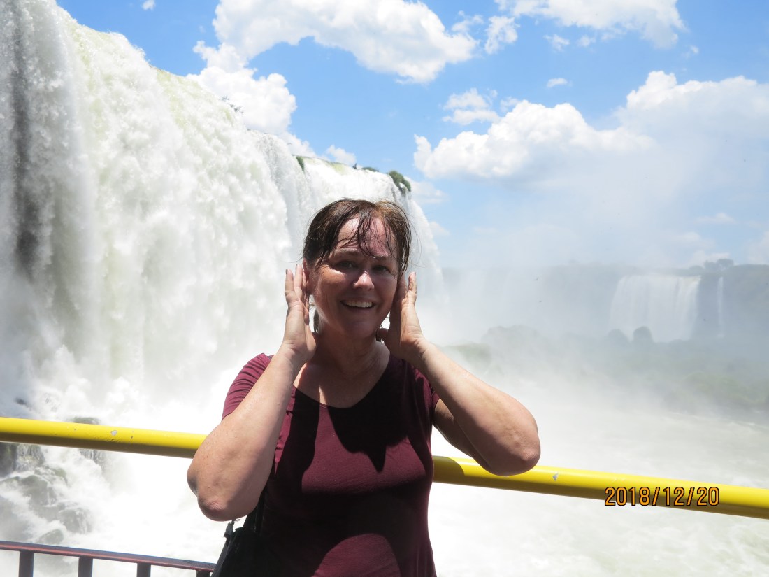 Är det verkligen värt att åka över till Brasilianska sidan oxå, funderade vi – det var ju så mäktigt från Argentinska sidan? Jo, det gjorde vi, med lokala bussen, genom två passkontroller, ut ur Argentina och in i Brasilien. Än mer välorganiserat och nu även digitalt med automatbetalning både i entré och kafé. En dubbeldäckarbuss med öppen övervåning tog oss sakta upp till fallens övre del. Avstigning och ny vandring i regnskog. Först ser vi samma fall som vi såg igår, mer på avstånd, men även idag tar det andan ur oss. Men snart börjar vi ana att det finns mer att se ”runt hörnet”, här möter vi de allra högst fallen, nära 100 m fallhöjd, dånande så att det knappt går att höra varandra.